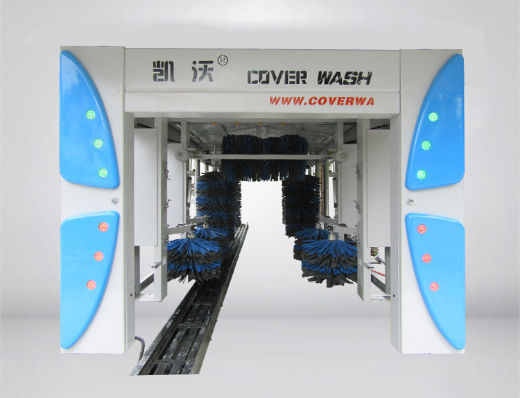 COVER-凱沃隧道式電腦洗車(chē)機(jī)的洗車(chē)流程方式,當(dāng)車(chē)輛駛?cè)胼斔蜋C(jī)定位,由輸送機(jī)推桿推動(dòng)車(chē)子的前輪前進(jìn),用于對(duì)各種轎車(chē)及中小型面包車(chē)的外表進(jìn)行高壓沖洗、噴泡沫、刷洗車(chē)、打蠟、風(fēng)干等流程。當(dāng)前車(chē)輛推進(jìn)離開(kāi)輸送機(jī)定位后,二次車(chē)輛即可駛?cè)攵ㄎ?,做已上?dòng)作。