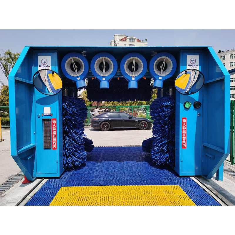 優(yōu)點(diǎn):洗車效率高,洗車大約需要90秒。隧道式洗車機(jī) 弱點(diǎn):洗車后的風(fēng)干效率不高,很多水漬附著在車身上。在隧道機(jī)的入口處是傳送帶的入口。在現(xiàn)場(chǎng)工作技術(shù)人員的指導(dǎo)下,車主只需將車輛側(cè)面的輪胎驅(qū)動(dòng)到傳送帶上,懸掛空檔,關(guān)閉后視鏡,然后關(guān)閉門窗。然后,傳送帶將汽車從入口運(yùn)送到出口,中央刷子和風(fēng)扇逐漸開(kāi)始工作。 在加油站,隧道式洗車機(jī)很普遍,但是畢竟加油站的交通繁忙,如果洗車效率太慢,加油站就會(huì)擁擠。