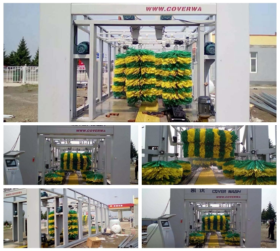 隧道式電腦洗車機的洗車流程方式,當車輛駛?cè)胼斔蜋C定位,由輸送機推桿推動車子的前輪前進,用于對各種轎車及中小型面包車的外表進行高壓沖洗、噴泡沫、刷洗車、打蠟、風干等流程。當前車輛推進離開輸送機定位后,二次車輛即可駛?cè)攵ㄎ?,做已上動作。在較短時間內(nèi)連續(xù)流水線洗車作業(yè)方式,能夠快速的完成沖洗、洗車、打蠟、風干等作業(yè)。隧道洗車機洗車設備利用軌道帶動汽車運行進行清洗。實現(xiàn):自動沖洗底盤、自動噴電腦洗車機專用泡沫蠟、自動仿行刷洗、自動噴電腦洗車機專用亮光蠟、自動仿行風干。
