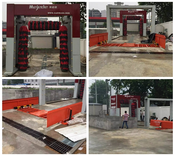湖北省武漢市江漢區(qū)南火車站 安裝臺灣美嘉德清洗垃圾車輛大巴洗車機設(shè)備現(xiàn)場安裝中